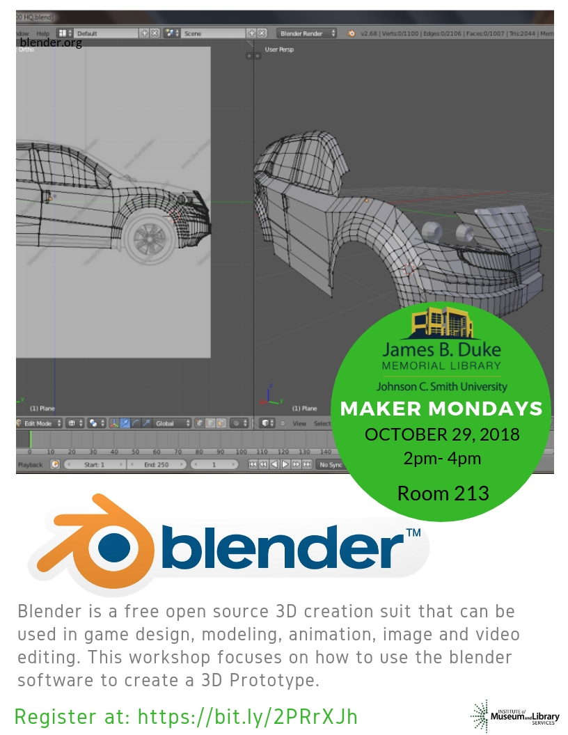 Blender is a free open source 3D creation suit that can be used in game design, modeling, animation, image and video editing. This workshop will focus on using the blender software to create a 3D Prototype. The workshop is a hands-on event, so bring your own computers. Register here! https://bit.ly/2PRrXJh