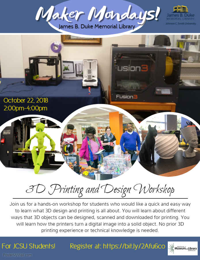 The student research resource mash-up provides an opportunity for students to interact with support staff at JCSU’s James. B Duke Library and learn more about free resources to help with their research. Students will be given a first-hand demonstration of the library’s new 3-D printing tools, get information on how to access Lynda, an online…