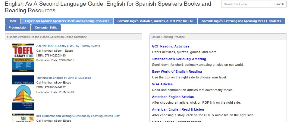 The James B. Duke Memorial Library has a number of resources accessible through our library catalog and research guides to support our Metropolitan College’s English As Second Language Certification Program.